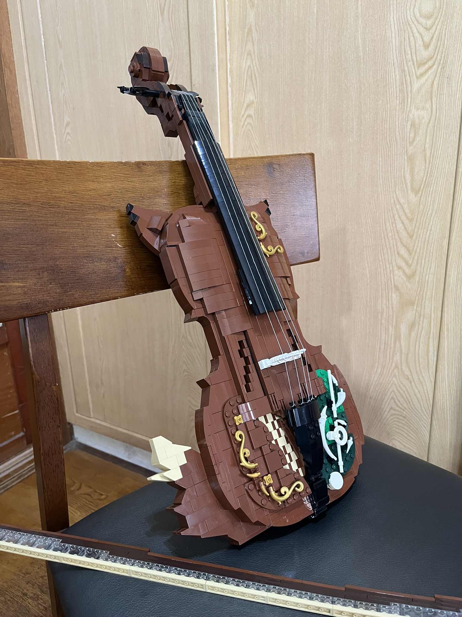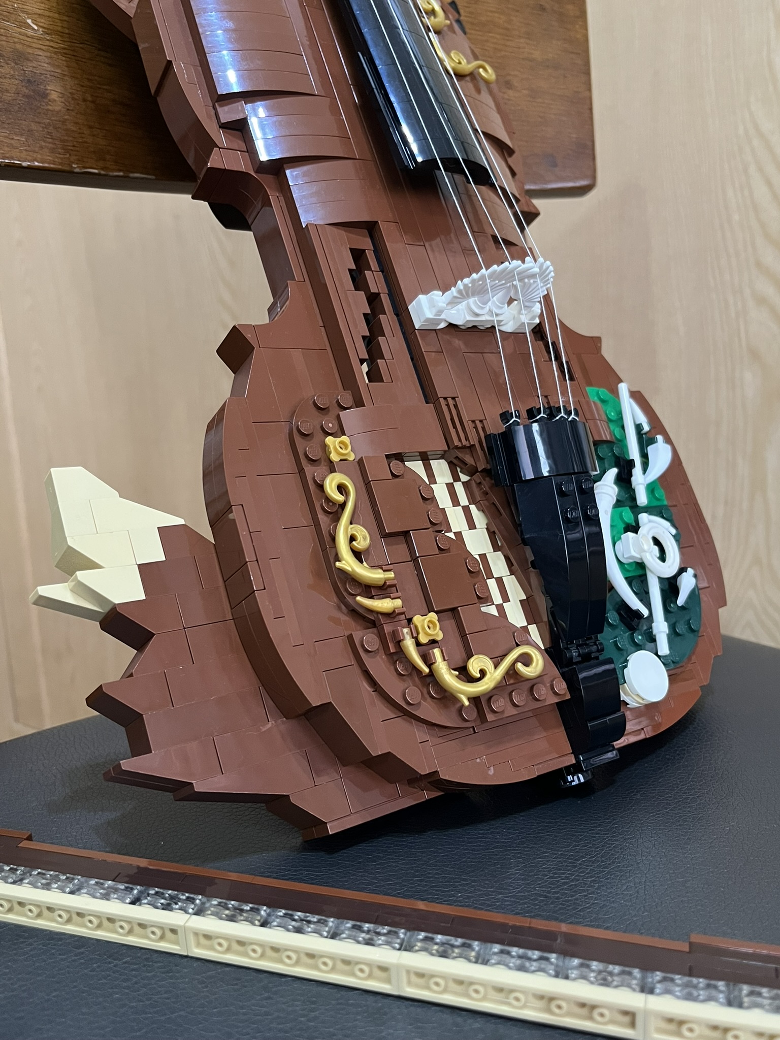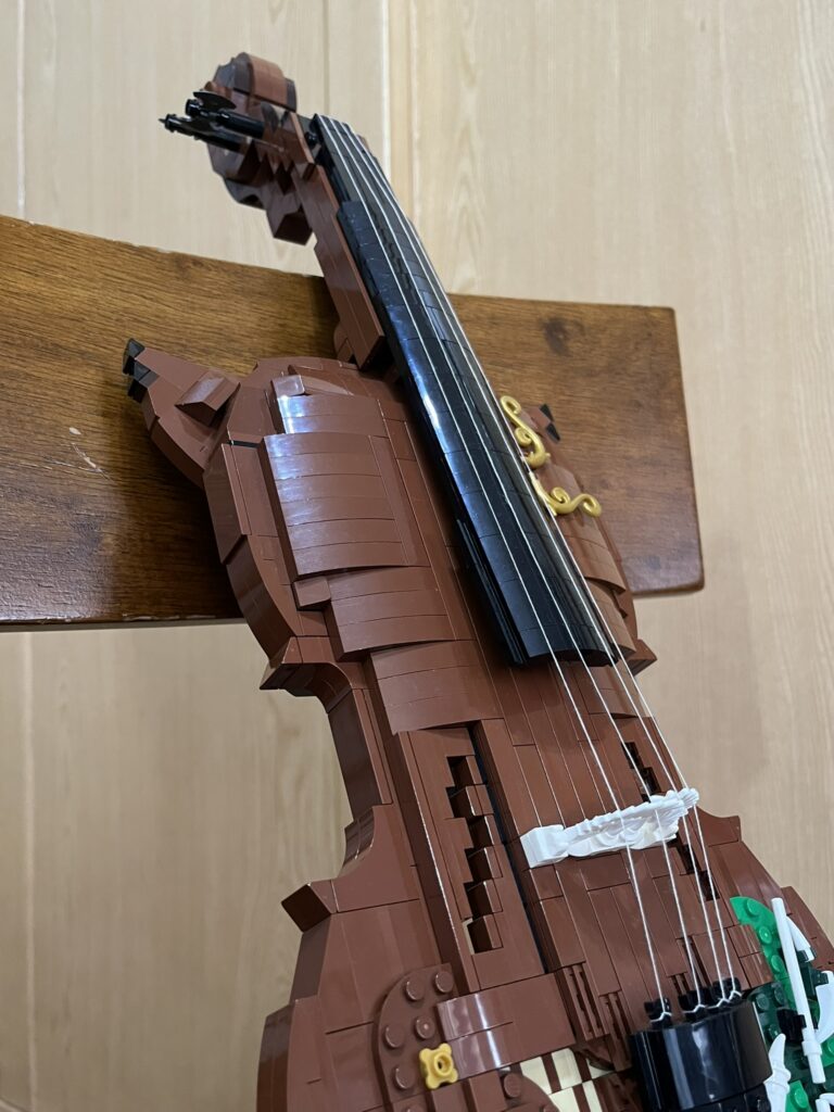 This piece is more than just a model: the back is hollow, can fit a smartphone inside to play music. I’ve recreated all the essential details—the scroll, fingerboard, f-holes, bridge, and tailpiece—along with many decorative elements. And yes, it even features fox ears and a tail.