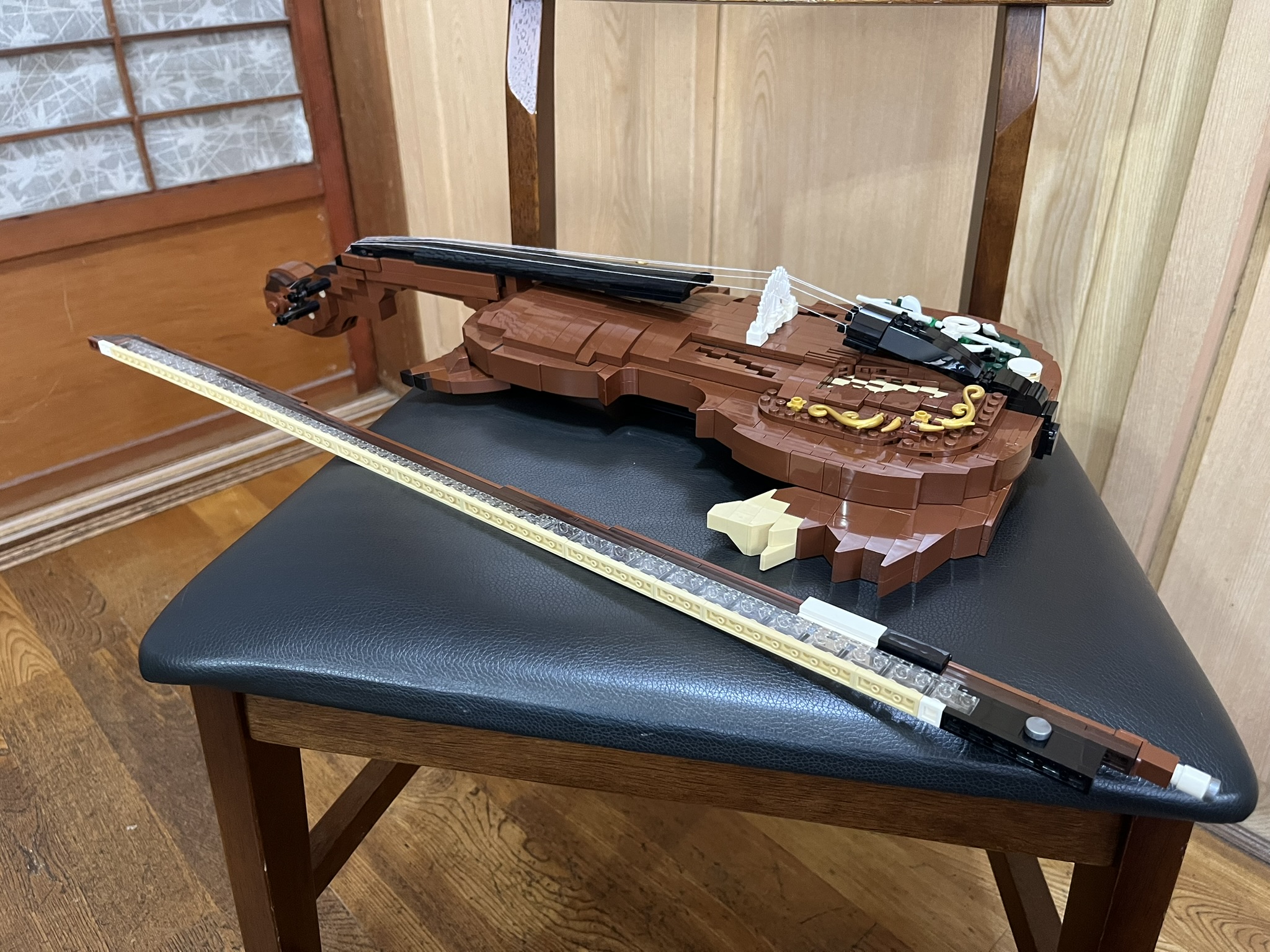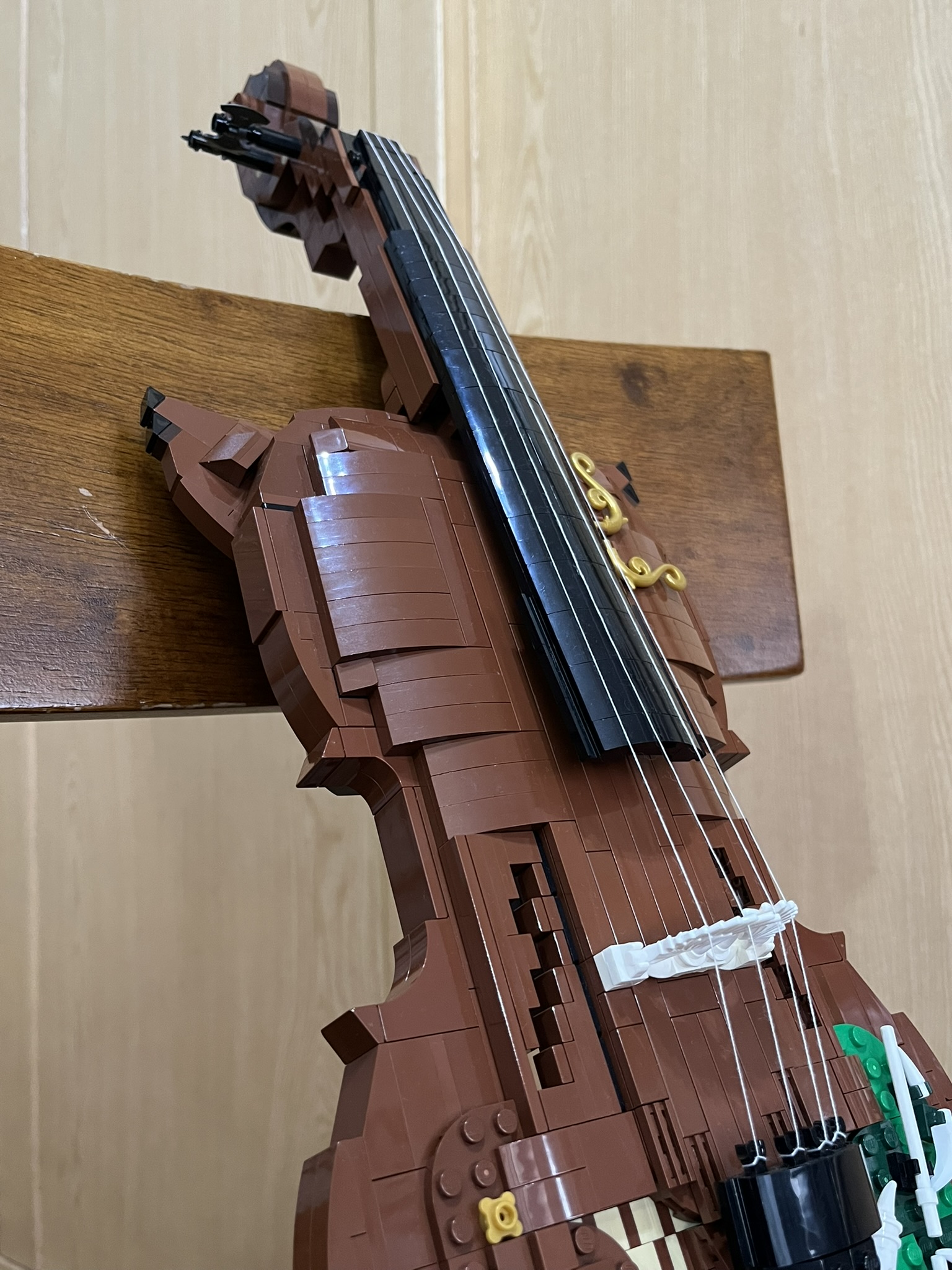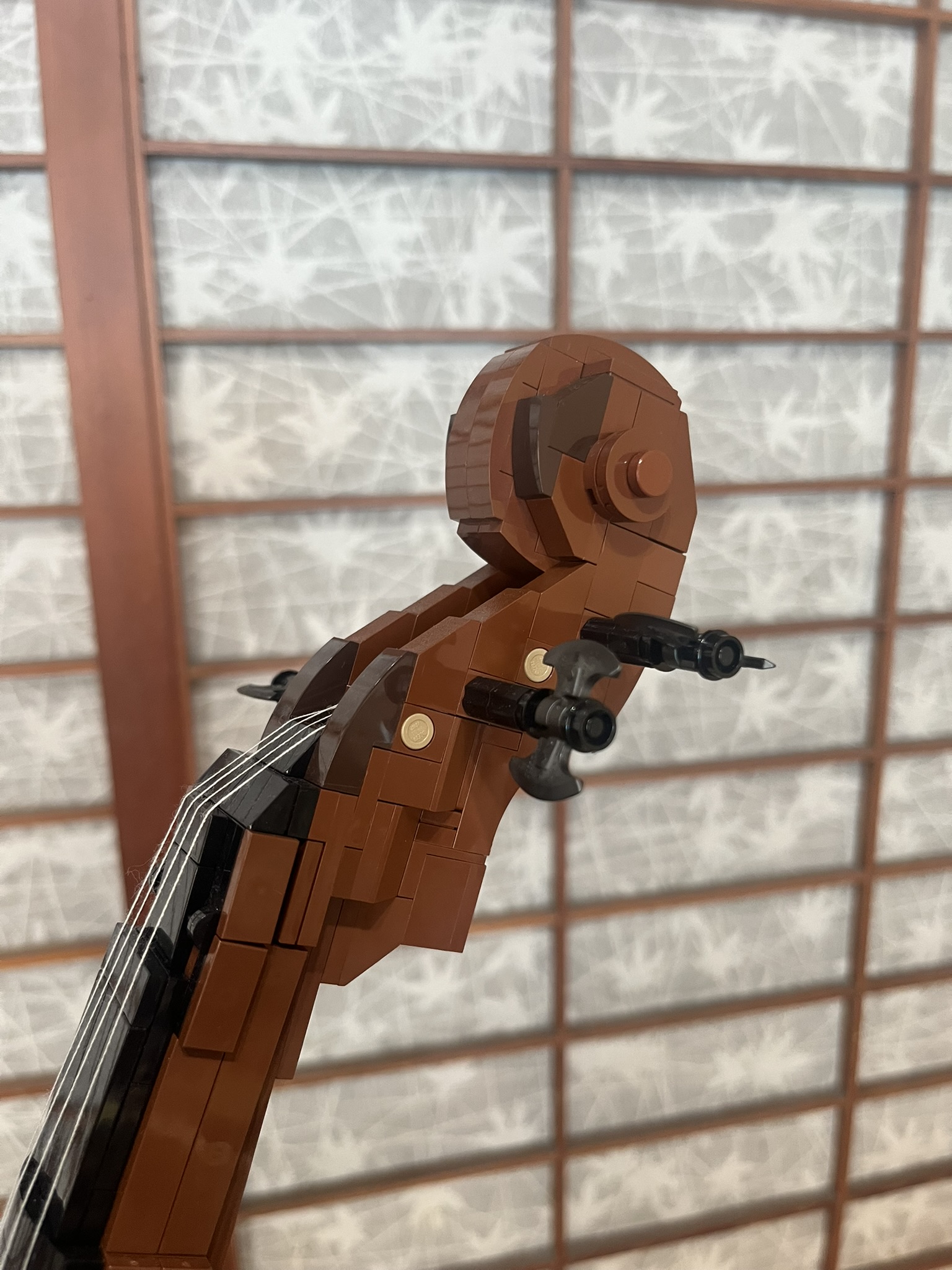 This piece is more than just a model: the back is hollow, can fit a smartphone inside to play music. I’ve recreated all the essential details—the scroll, fingerboard, f-holes, bridge, and tailpiece—along with many decorative elements. And yes, it even features fox ears and a tail.
